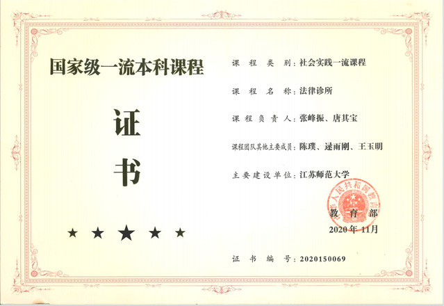 Ø 法学专业现为国家级一流本科专业建设点,拥有国家级一流本科课程(社会实践类)和省级一流本科课程(线下)各1门。