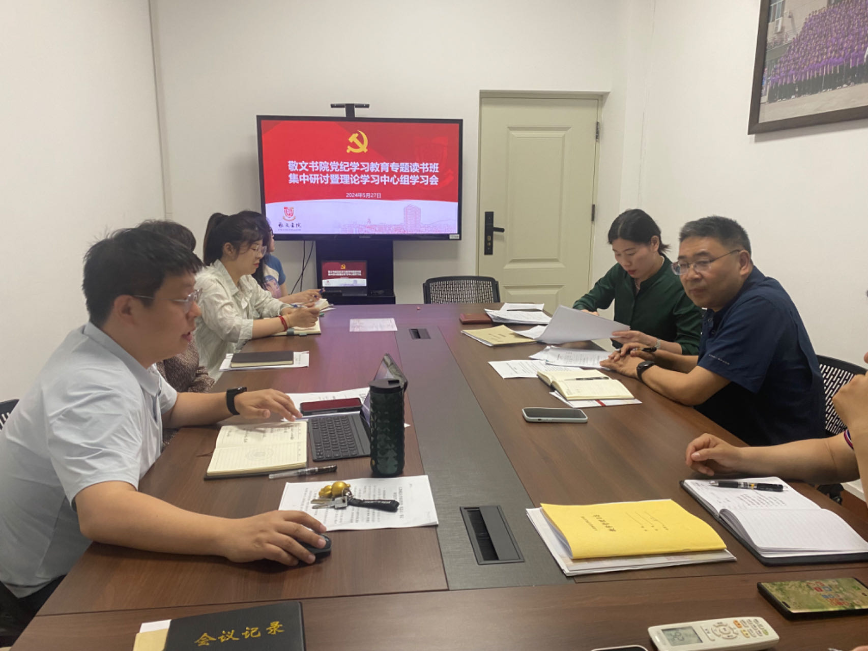 5月27日下午,敬文书院党委举办党纪学习教育专题读书班集中研讨暨理论学习中心组(扩大)学习会,深入解读此次新修订的《条例》的鲜明特点与重要意义。书院党委理论学习中心组成员以及全体教工党员参加集中学习研讨。会议由院党委书记姜南主持。