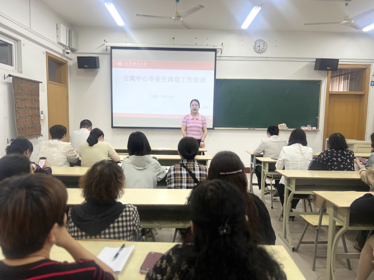 临近毕业季,为保证毕业生平安、文明离校,顺利完成毕业生离校工作,公寓服务中心于5月24日上午8点30分在西教7#-110教室组织开展了毕业生离宿专题培训。公寓各站点主管、值班员共计40余人参加培训。