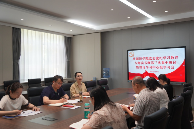 5月29日上午,外国语学院党委举办党纪学习教育专题读书班第三次集中研讨暨理论学习中心组学习会,深入学习《中国共产党纪律处分条例》(以下简称《条例》)第一编第五章、第二编第六章。学院党委理论学习中心组成员参加集中学习研讨。会议由学院党委书记庄园主持。