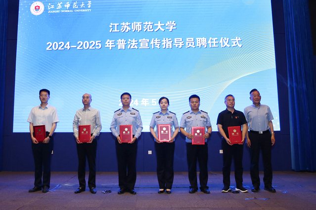 学校相关职能部门负责人为2024-2025年普法宣传指导员和“普法志愿者大队”志愿者颁发聘书。聘任仪式结束后,来自市委机要保密局、市知识产权保护中心、市反诈中心、市公安局禁毒支队、网安支队、铜山区劳动人事争议仲裁院的普法宣传指导员携手普法志愿者们在至善路开展了总体国家安全观、禁毒知识、网络安全、防诈反诈、知识产权保护、劳动者权益保护等现场普法宣传教育活动。活动现场人头攒动,反响热烈。