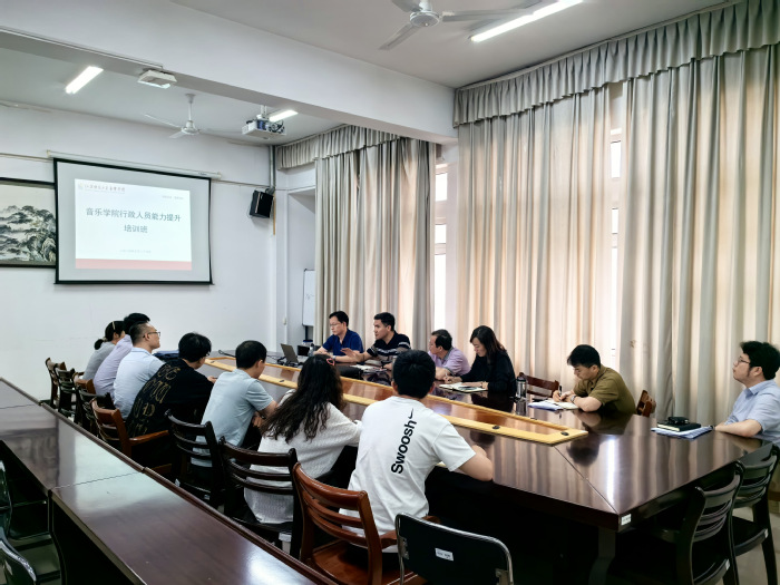 5月29日下午,音乐学院行政人员能力提升培训班开班。校纪委沈道海副书记应邀为学院班子成员及全体管理服务人员做了第一场集中培训。