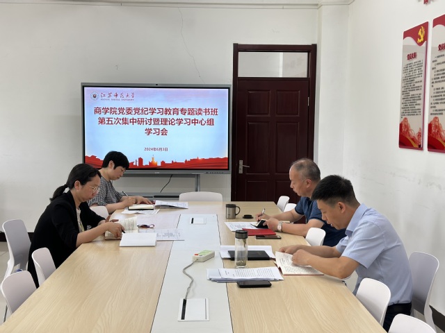 6月3日上午,商学院党委举行党纪学习教育专题读书班第五次集中研讨暨理论学习中心组学习会,院党委理论学习中心组全体成员参加学习。会议由院党委书记钱程主持。
