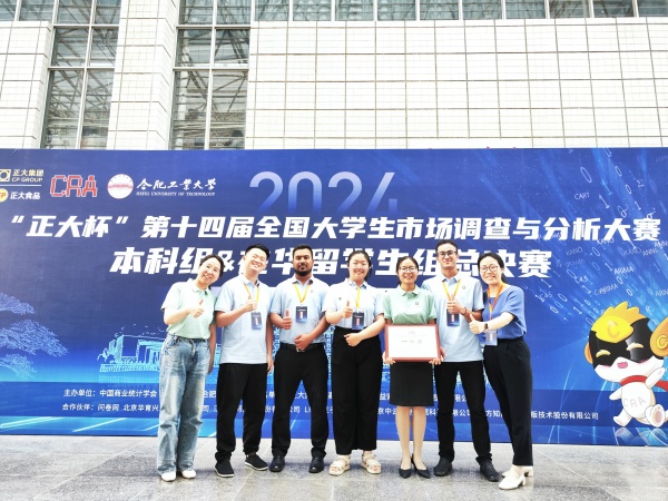 2024年6月2日,第十四届全国大学生市场调查与分析大赛在华留学生组总决赛在合肥工业大学圆满结束。由我院张海燕、徐君及数统学院刘鹏飞老师指导的THEONE团队(杨思盈、杨洋、KUDRATOV SHERALI、ISLAM S M ARIFUL和Foo Bi Lin)作品《毋庸烹羊与宰牛,悯否?厌否?——培养肉接受度影响因素调查》荣获在华留学生组全国一等奖。