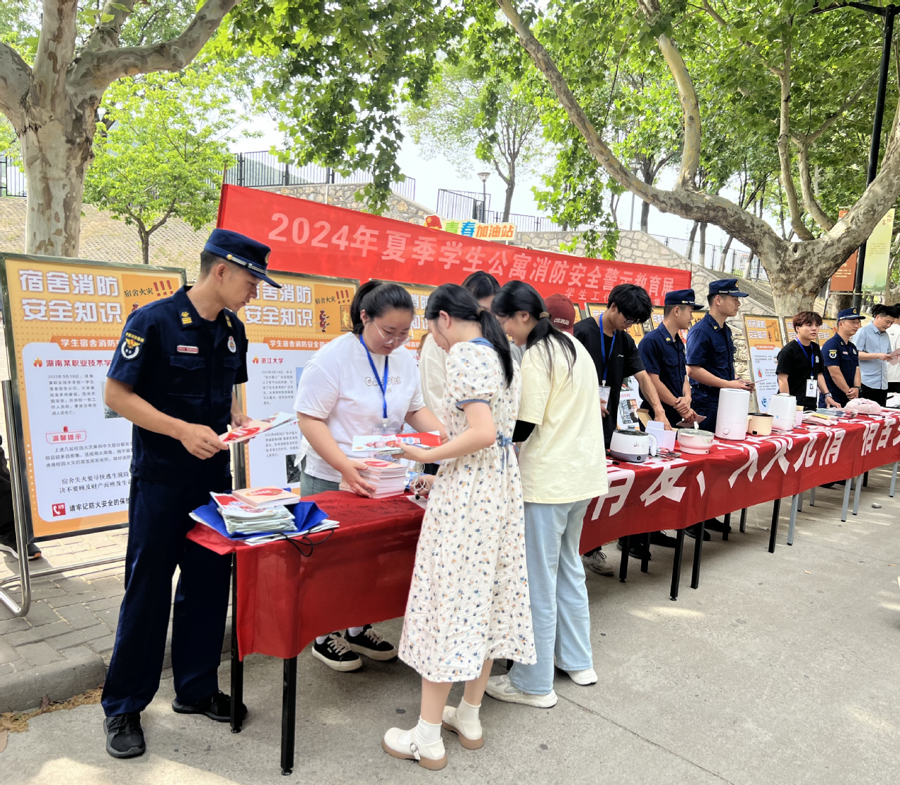 为进一步加强学生公寓安全管理工作,增强学生消防安全意识,提高学生自救自护能力,宣传消防法律法规、普及消防安全知识,后勤集团公寓服务中心联合学工处、保卫处、铜山区消防救援大队于5月29日下午在泉山校区游泳馆对面广场开展宿舍消防安全警示教育活动。