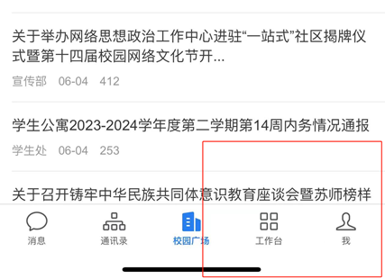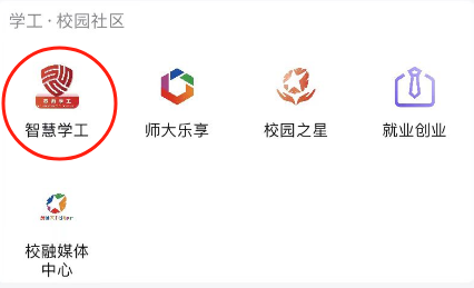 2.点击“工作台”——“学工·校园社区”栏目——“智慧学工”。