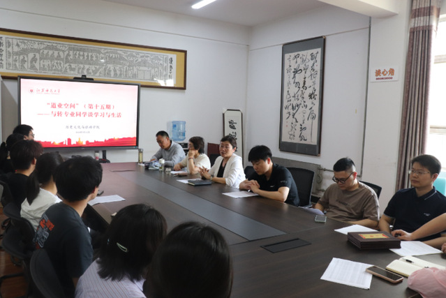为加强学院教师与学生间的沟通交流,切实解决历史学专业转专业同学学习、生活中遇到的困惑与问题,2024年5月31日下午,历旅学院在16号楼412会议室开展第十五期“道业空间”党建沙龙活动。学院党委戚洪书记、杜登副书记、历史系教师代表蒋保、宋严萍、丁佳伟、郝天豪,2023级年级辅导员赵宇,以及2023级历史学专业转专业同学代表共10人参加本次活动。赵宇老师主持活动。