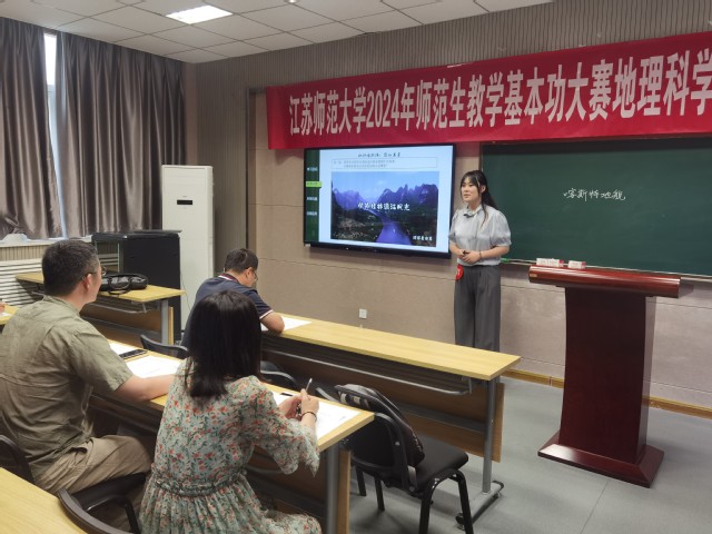 为深入贯彻习近平总书记关于教育工作的重要指示批示精神,推动教育强国建设,促进“能说会做善导”的新型教师建设,提高专业技能,增加就业机会。2024年6月1日、2日,江苏师范大学首届师范生教学技能大赛地理科学专业比赛在泉山校区举行。