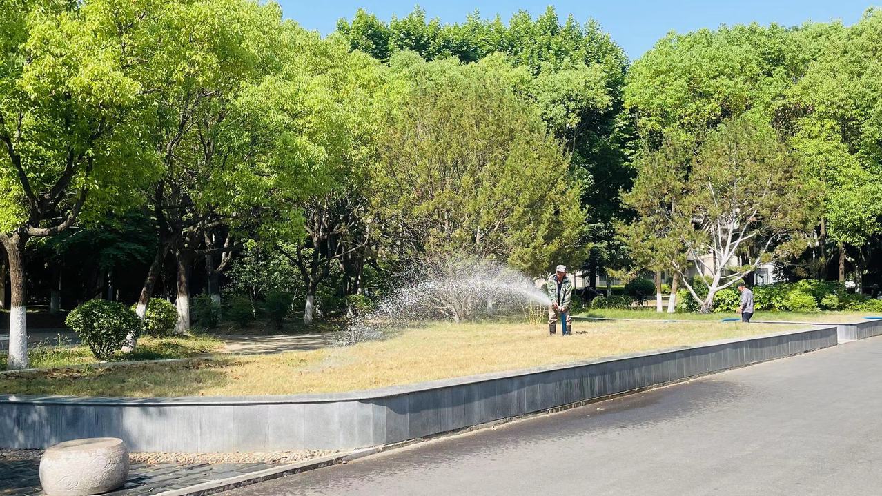 近期以来,徐州地区持续高温、降雨稀少。校园绿植倍受“烤”验,我校乔木、灌木及各类植物受到了严重危害,造成失水,威胁到植物正常生长。为缓解高温干旱带来的影响,物业服务中心积极行动,周密安排、集中力量、确保目标责任落到实处,确保抗旱护绿措施到位。