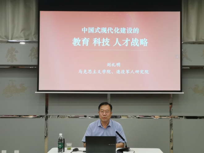 6月5日下午,我校退役军人研究院院长、马克思主义学院教授刘礼明为我校转业军官学员开设了“中国式现代化建设的教育、科技 、人才战略”专题讲座。此次讲座由退役军人学院辅导员刘姗主持。