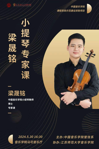 5月30日下午14点30分,中国音乐学院博士生导师金辉教授、梁晟铭博士的小提琴专家课于江苏师范大学音乐学院马可音乐厅成功举行。此次专家课是中国音乐学院课程思政示范建设资助项目,由中国音乐学院管弦系主办,江苏师范大学音乐学院协办。音乐学院王志军院长、崔飞副院长、郭威副院长,以及音乐学院部分师生、周边地区的弦乐教师和爱好者们共同聆听了此次专家课。王志军院长介绍了金辉教授、梁晟铭博士的主要艺术成就,并代表我院全体师生向两位专家的到来,表示热烈的欢迎。