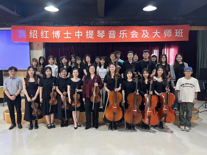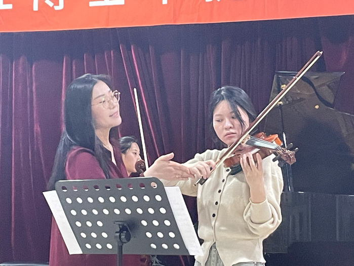 在大师班上,袁博士对我院选拔的学生们进行了一对一的悉心指导,对我院学生的专业能力给予了充分的肯定,同时,也指出了学生们在演奏过程中的不足之处,并耐心且细致地进行引导与示范。此次活动充分凸显了我院对弦乐国际化的高度重视,也充分展示了我院弦乐教学的实力与水平,让同学们收获颇丰。