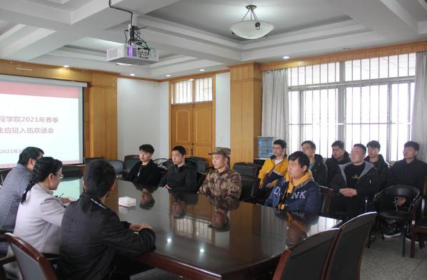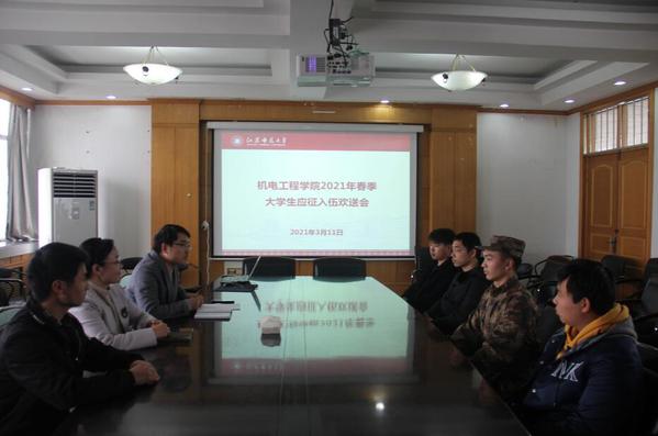 3月11日下午,机电工程学院在12#606A会议室举行2021年春季大学生应征入伍欢送会。院党委副书记陈晓林,团委书记丁永剑,18机51班退伍大学生王茂,20机62班入伍新兵周财及20机62班学生代表参加了会议。会议由丁永剑老师主持。