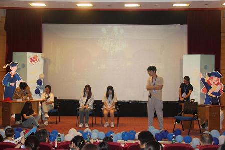 毕业晚会中,何莉娜书记为优秀考研学子代表颁奖,李顺才院长为优秀毕业生代表拨穗。晚会最后,还有一个小彩蛋送给毕业生们,是由毕业生的名字组成的祝福语。