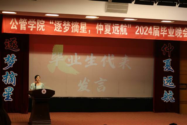 毕业生代表顾润男在发言中深情回顾了大学时光,对母校和学院的辛勤培养表达了由衷的感激之情。她分享了自己奋斗成才的切身体会,以此激励在校的学弟学妹们要珍惜大学时光,抓住机遇,勤奋学习,努力奋斗,共同迈向充满希望的未来。