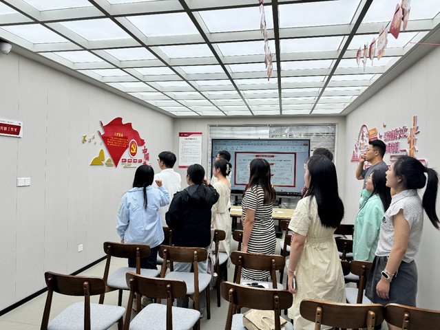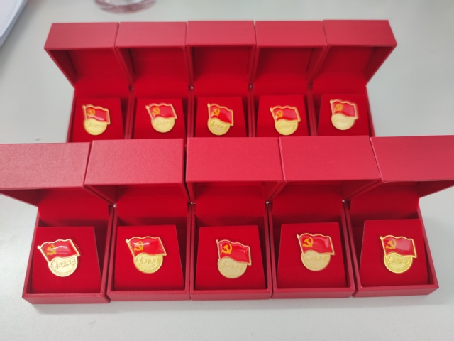 接着全体毕业生党员重温入党誓言,由毕业生党员代表王倩洁同志领誓,全体党员面向党旗,右手握拳,庄严地向党旗宣誓。誓言铿锵有力,表达了对党的忠诚和为实现共产主义伟大事业奋斗终身的坚定信念。宣誓结束后,刘莉莉老师向即将毕业的学生党员赠送了新党徽,并寄语他们在未来的工作和生活中都能始终保持初心,牢记党员身份,以实际行动践行党的宗旨。