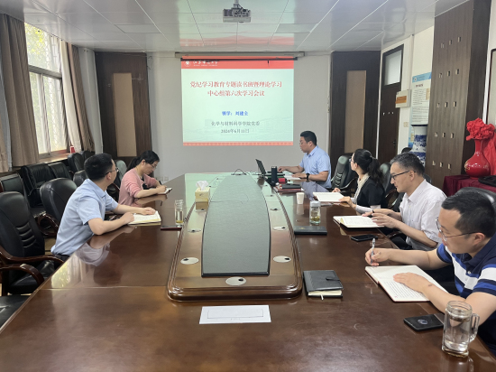 6月11日上午,化学与材料科学学院党委在化学楼209会议室召开党纪学习教育专题读书班(第四期)暨理论学习中心组第六次学习会议,深入学习《中国共产党纪律处分条例》(以下简称《条例》)第二编第九章内容。学院党委理论学习中心组全体成员参加会议,本次学习由院党委书记吴晨主持。