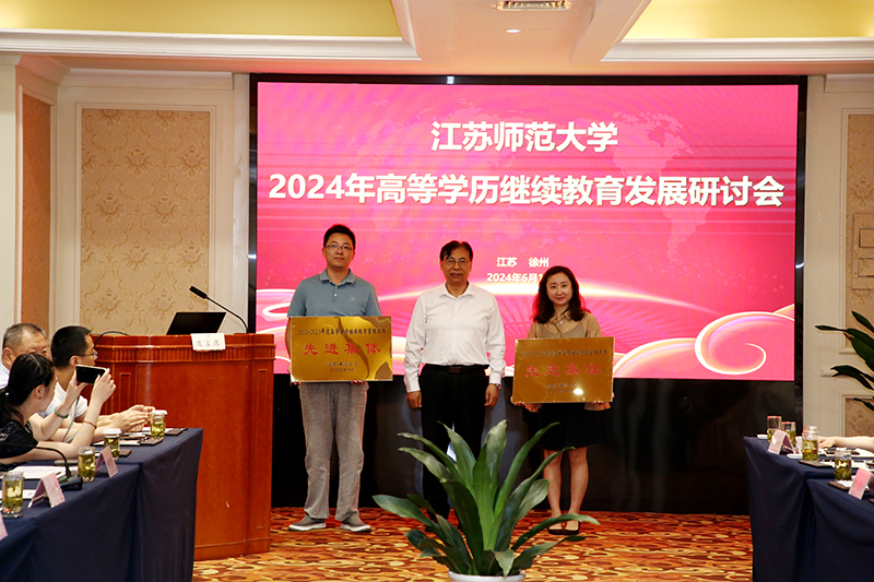 朱景坤书记宣读表彰文件,对在继续教育工作中表现突出的先进集体和优秀个人进行表彰。获奖代表们依次上台领奖,与会领导为他们颁发荣誉证书。