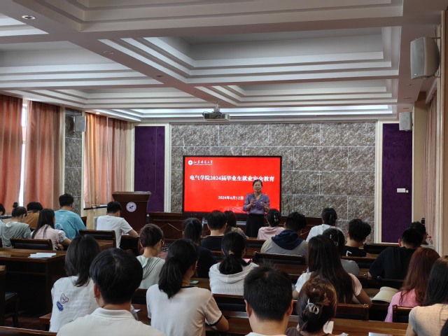 为提高毕业生就业安全意识,更好地适应复杂的就业环境,6月12日下午,电气学院在12#405B报告厅举办2024届毕业生就业安全教育活动,2024届毕业生代表参加活动。