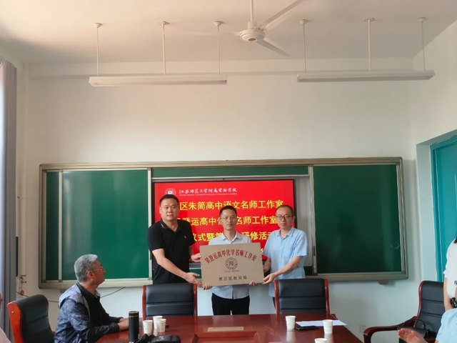 为认真贯彻落实省、市《人才发展规划纲要》精神,更好发挥名师在教育改革和发展中的示范、引领和指导作用,加快贾汪区中小学骨干教师队伍建设,建立“区教师发展中心、中小学名师工作室”二位一体的骨干教师培养体系,根据《关于开展2024年贾汪区中小学名师工作室评选工作的通知》精神,经个人申报、学校推荐、区教育局组织评审,我校有两个名师工作室顺利通过评审并挂牌成立,分别是朱简高中语文名师工作室和吴登运高中化学名师工作室。