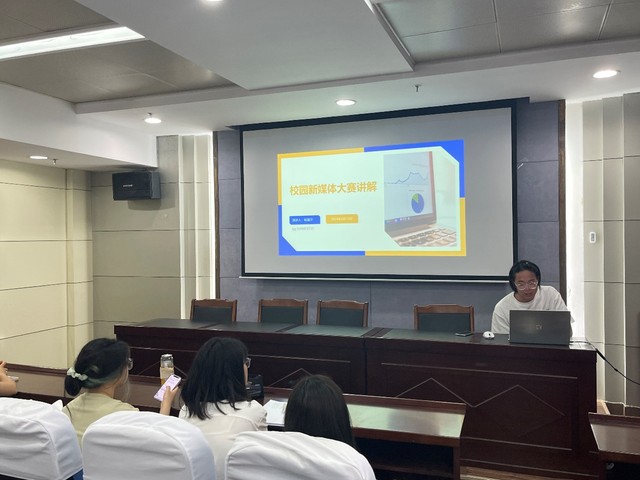 分享会上,陈海昊同学首先解读了新媒体大赛的政策文件,为同学们明确了参赛的方向与要求。随后,他结合个人经验,为同学们介绍了多个热门选题,并深入剖析了去年获奖作品《学深悟透担使命,踔厉奋发勇前行》的创作思路与亮点。此外,杨嘉宇同学也为大家详细讲解了小组赛的相关要求和推文制作的关键要素,为参赛者提供了宝贵的建议。
