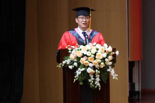 典礼在庄严肃穆的国歌声中拉开序幕。外国语学院院长于涛教授致辞,向2024届毕业生顺利完成学业表示祝贺,并向悉心指导他们的老师、辛勤养育他们的父母致以感谢。于院长饱含深情地回顾了毕业生在校期间成长之路上的点点滴滴和学院近年来事业发展取得的成绩,充分肯定了全体毕业生赓续“崇德厚学,励志敏行”的校训,践行“明德博学,融通中外”的院训,经历各种考验,用努力和拼搏为自己的成长交上了一份满意的答卷。并勉励毕业生学会用汗水代替泪水,用志气代替叹气,做起而行之的行动者,当攻坚克难的奋斗者。