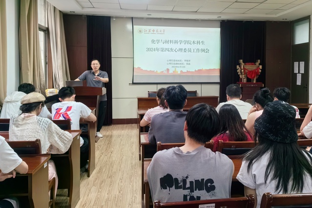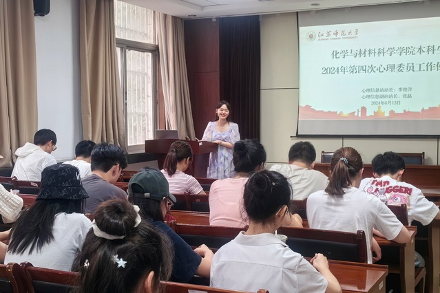 为加强学院心理健康教育和管理,总结近期心理健康活动成效,全面了解各班级学生状态,6月13日下午,化学与材料科学学院在化学楼211会议室召开了2024年第四次心理委员工作例会。学院党委副书记赵玉璋、辅导员王舒静及各班心理委员参加会议,会议由王舒静老师主持。