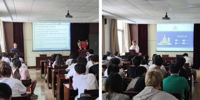 班会由各班班主任主持,简要介绍了本次班会的目的和意义,希望同学们能在接下来的分享会中汲取到宝贵的经验,为考研之路奠定坚实的基础。随后,我院20级成功考研学生代表进行经验分享。他们分别从备考策略、资料推荐、考试技巧、时间管理和心态调整等方面为同学们提供了宝贵的建议。一方面,介绍了自己的考研决策过程,包括选择专业、报考院校等方面的考量。另一方面,分享了自己的备考经验,包括制定合理的学习计划、高效的备考方法和科学的时间管理方法。此外,还分享了自己的考研心得,比如如何应对考前焦虑和压力进行心态的调整等,提出了一些备考中的常见问题及解决方案。