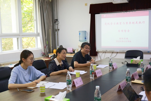 学院党政主要领导做表态发言,表示未来学院将进一步抓实抓严抓细党纪学习教育各项工作,严格落实重要制度执行,切实将本次检查中发现的问题和不足作为改进提升的重要契机,将党纪学习教育融入日常、抓在经常;进一步完善重要事项执行监督反馈体系,提升学院党政议事决策质量水平。同时,学院将继续坚决贯彻各项重要制度的执行,将本次检查中发现的不足视为推动工作改进和提升的重要契机,继续不折不扣落实学校党委决策部署,推动党纪学习教育往深里走、往实里走,为推进学校国际教育事业高质量发展提供坚强纪律保障。