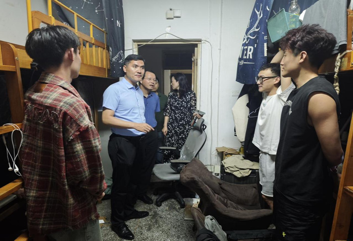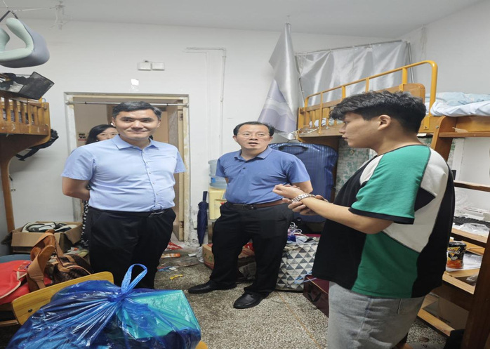 为扎实做好音乐学院2024届毕业生离校工作、表达对即将走出校门的2024届毕业生的关怀, 6月14日到6月17日,学院党委书记高小平、院长王志军、党委副书记夏雯、副院长崔飞、副院长郭威及全体辅导员老师深入学生公寓,走访慰问即将毕业离校的音乐学院2024届毕业生们,为毕业生们送上祝福。