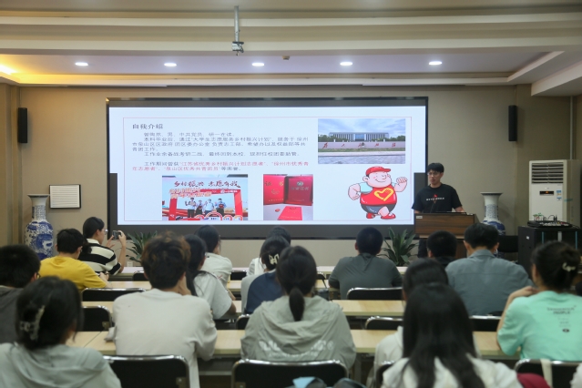 宣讲会上,学院邀请了“大学生志愿服务乡村振兴计划”的参与者曾陶然和我校研究生支教团成员邹语恒作为主讲嘉宾。他们围绕政策解读和经验分享两大主题,为在场同学详细介绍了“三支一扶”、“志愿服务乡村振兴计划”、“西部计划”的相关政策背景、实施意义、招募条件及优待政策等。此外,曾陶然还结合自身的服务经历,分享了在基层服务期间的工作感悟和成长收获。他表示,基层服务虽然充满挑战,但也是一个宝贵的成长机会。通过深入基层、服务群众,不仅提升了自己的专业技能和综合素质,还收获了宝贵的人生经验和深刻的社会认识。