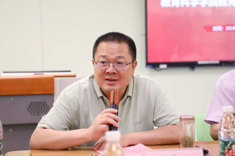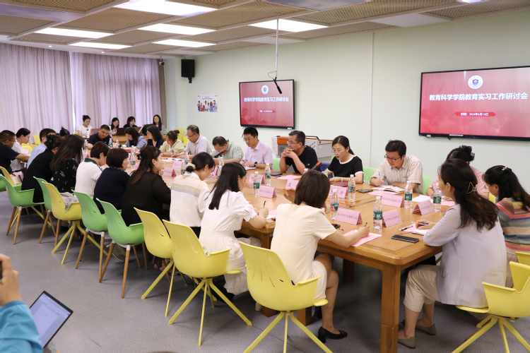 为高质量推进师范生教育实习工作,助力师范生成长与发展,6月19日下午,教育科学学院(教师教育学院)在26号楼104召开本年度教育实习工作研讨会。本次会议由学院副院长陈鹏教授主持。江苏师范大学教务处满在江副处长、梁靓副处长,研究生院赵峻岩副院长,课程与教学论研究所所长代建军教授,学院副院长王娟教授及部分教师代表,教育实习基地学校负责人出席本次会议。