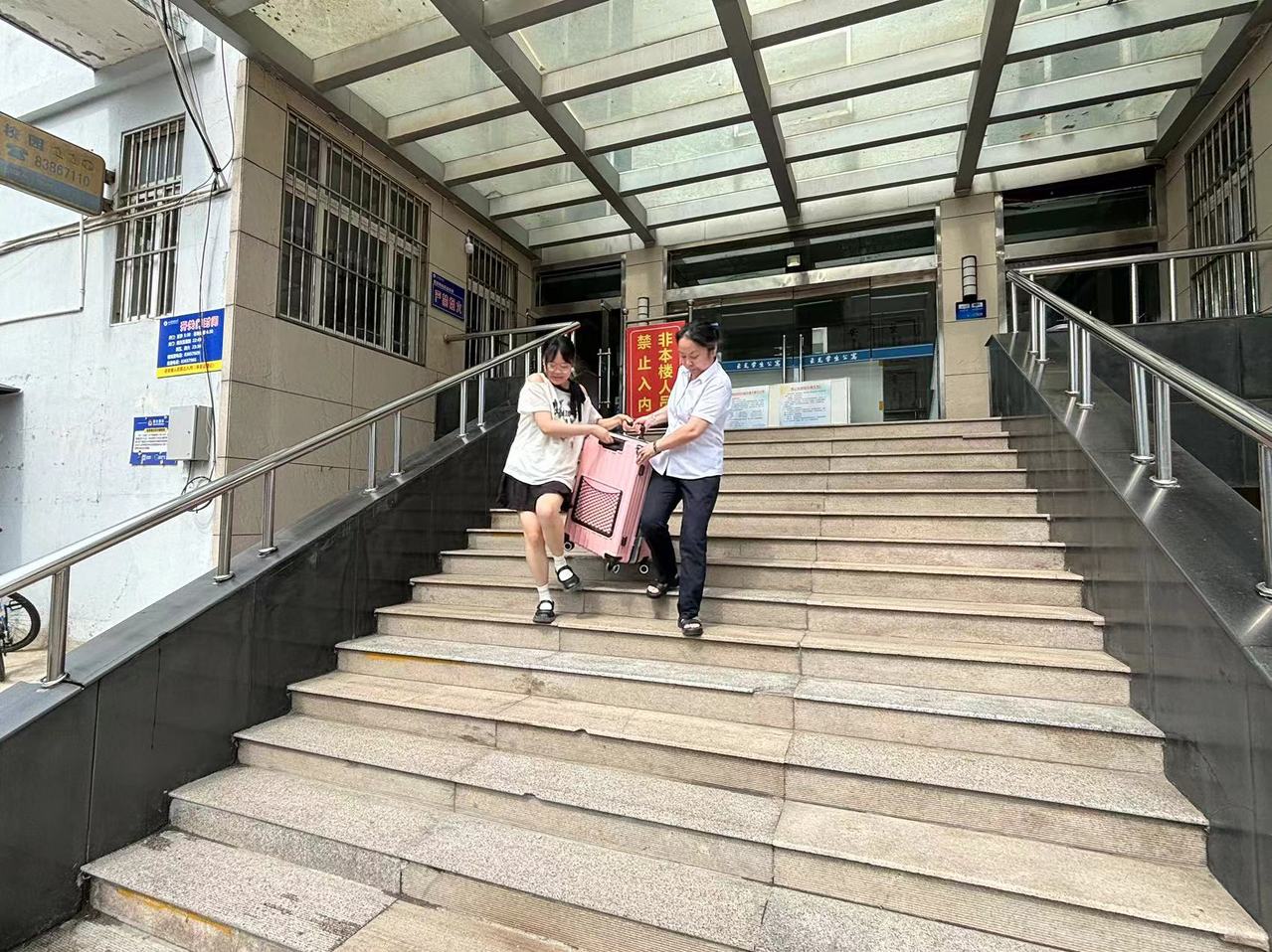 倾情服务细致入微“证件保管好,别落下。”6月15-16日毕业生集中离校期间,各公寓楼值班室实行双人双岗值班,她(他)们坚守岗位,按照流程主动服务,密切关注退宿情况,提醒办理时间节点确认等,适时嘱咐同学们带好个人物品,注意路途安全,并随时提供必要帮助。“包裹太重了吧,我跟你一起抬下去”、“这么多东西,家里来人了吗?有困难到值班室说一声啊”、“晚上几点的车,随时给你开门!”…她(他)们力所能及的关心、帮助有需要的同学,为毕业学子做好校园“最后一公里”服务。