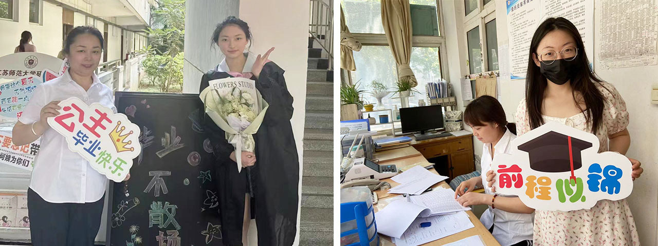双向奔赴温情离别在相逢处别离,在陪伴处守望。宿舍是大学的第二课堂,宿管人员是不上讲台的老师,他们与同学们生活接触最为频繁。四年前,她(他)们热情迎接新生,为莘莘学子答疑解惑,办理入住手续;四年中,24小时守护,在操劳大小事宜中传递爱岗敬业、助人为乐的精神,潜移默化中将服务与育人深度融合;毕业了,为了表达谢意,毕业学子赠送卡片、玩偶、绿植,与宿管人员依依话别、合影,留下美好的回忆。毕业晚会也不忘给宿管阿姨和大叔送来请帖,感谢阿姨和大叔几年的朝夕陪伴。