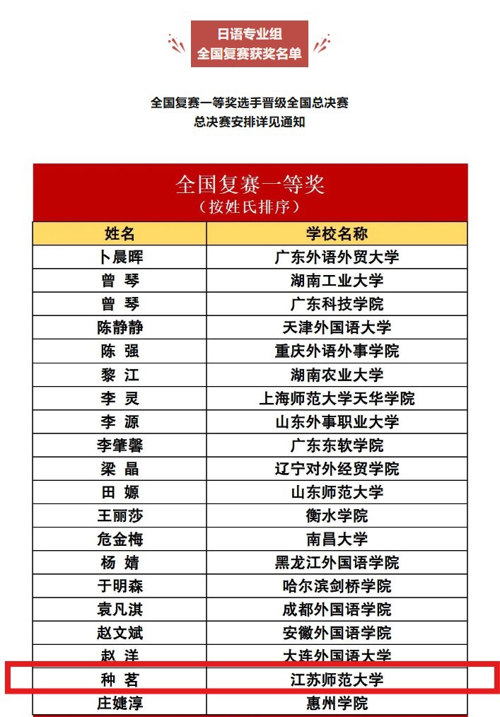 近日,2024年外研社“教学之星”大赛多语种组日语专业组全国复赛获奖名单公布,外国语学院种茗老师荣获全国复赛一等奖,并成功晋级将于7月24日举行的全国总决赛。
