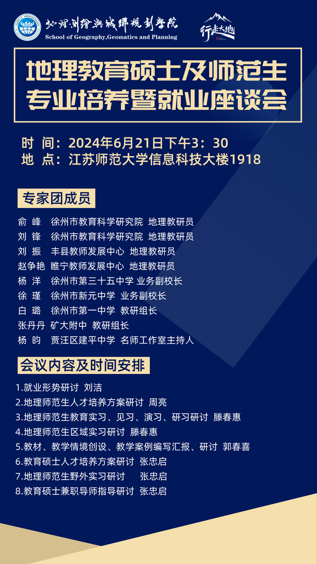 为加强我院“能说会做善导”的新型教师建设,提高专业技能,促进高质量就业,我院拟于2024年6月21日举办“地理教育硕士及师范生专业培养暨就业座谈会”,现将有关事项通知如下: