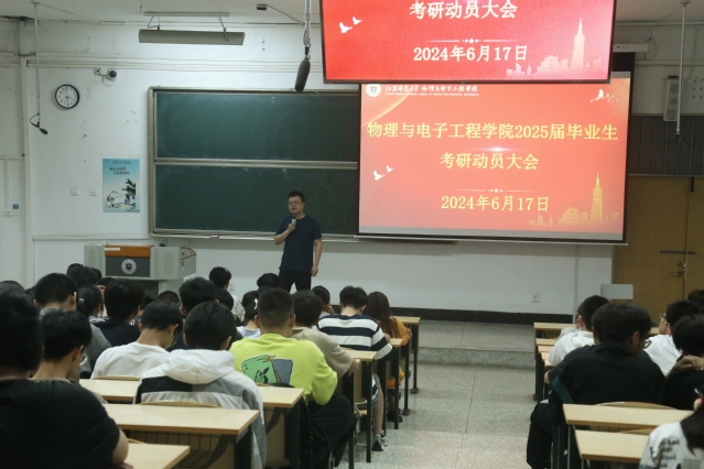 2024年6月17日、18日下午,物理与电子工程学院在17#100A和西教2#201分两次举行了2025届全体毕业生考研动员大会,旨在激发同学们的考研热情,明确备考方向。