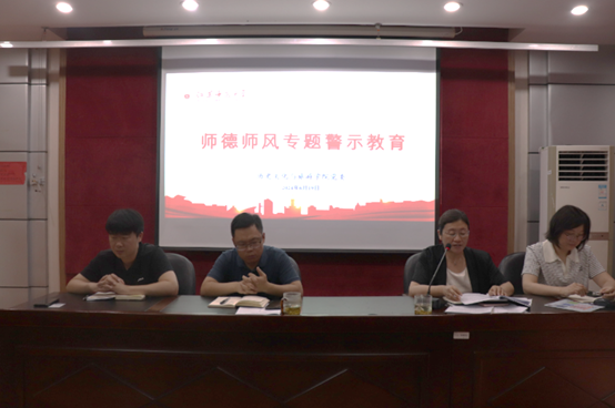 2024年6月19日,历旅学院组织召开师德师风警示教育,以案例分析、文件传达、纪律提醒的形式,抓好“让教育者受教育”工作,全面提升教师的师德素养、纪律意识和责任意识。