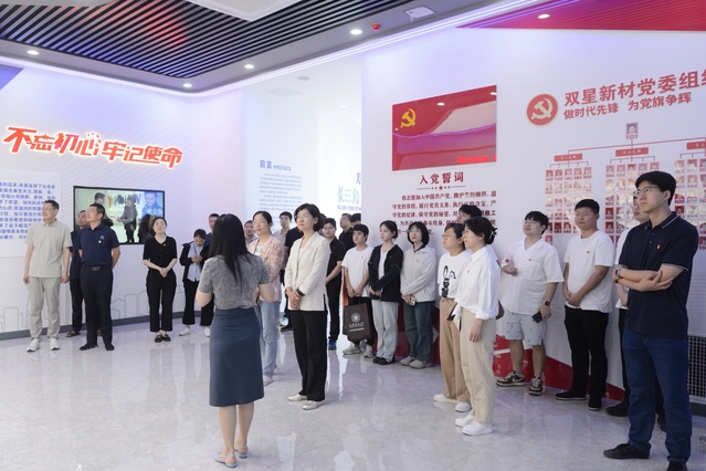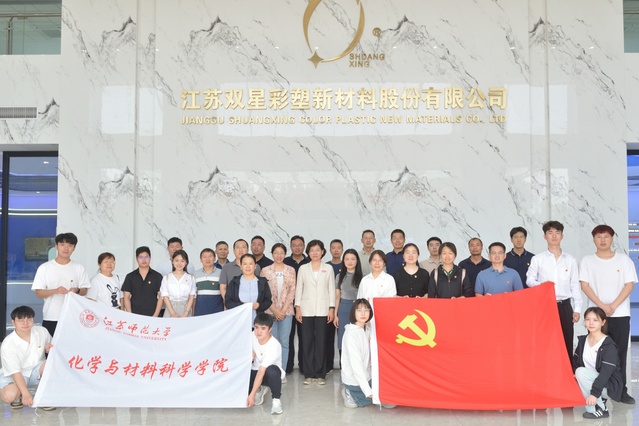 活动第一站是赴宿迁高科技企业江苏双星彩塑新材料股份有限公司,进行党建观摩交流并参观企业展厅。通过现场参观和企业介绍,师生党员们亲身体验到了该公司的创新发展理念和党建活动风采,为我院拓展基层党建工作提供了思路。吴晨书记介绍了我院发展特色与优势、人才培养成效、学生实习和毕业生就业有关情况,双方结合实习实训、就业招聘、供需对接等有关内容进行了深入交流,积极推进“党建+人才培养”深度融合。