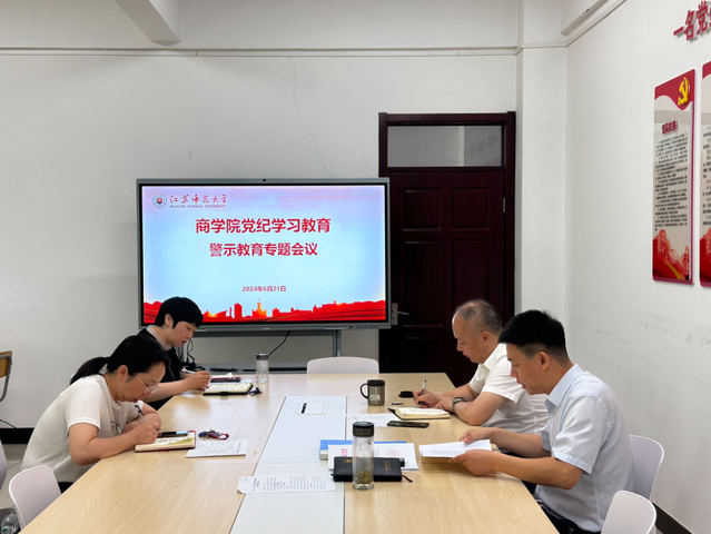 6月21日,商学院党委开展党纪学习教育警示教育专题会议,全体党委委员参会,会议由院党委书记钱程主持。