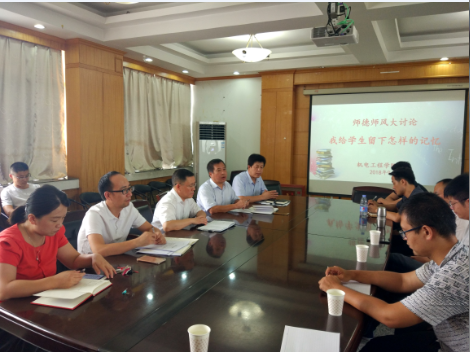 为庆祝第34个教师节,帮助教师把好师德关,提高教职工队伍的整体素质,9月12日下午,机电工程学院组织开展了以“我给学生留下怎样的记忆”为主题的师德师风大讨论活动,活动由学院党委刘福义书记主持,学院领导班子和党员教师共计30余人参加了本次活动。