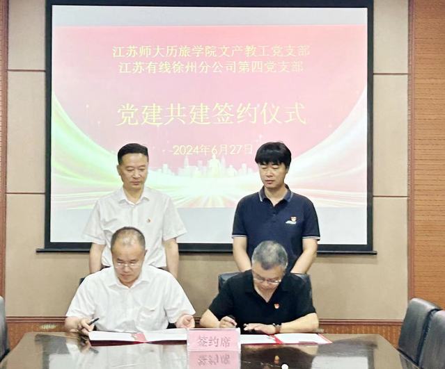 为充分发挥党建引领作用,深入推进校企合作,构建校企双方“组织共建、人才共育、资源共享、发展共促”的党建工作新格局,2024年6月27日,历旅学院文产教工党支部与江苏有线徐州分公司第四党支部开展党建共建签约活动。