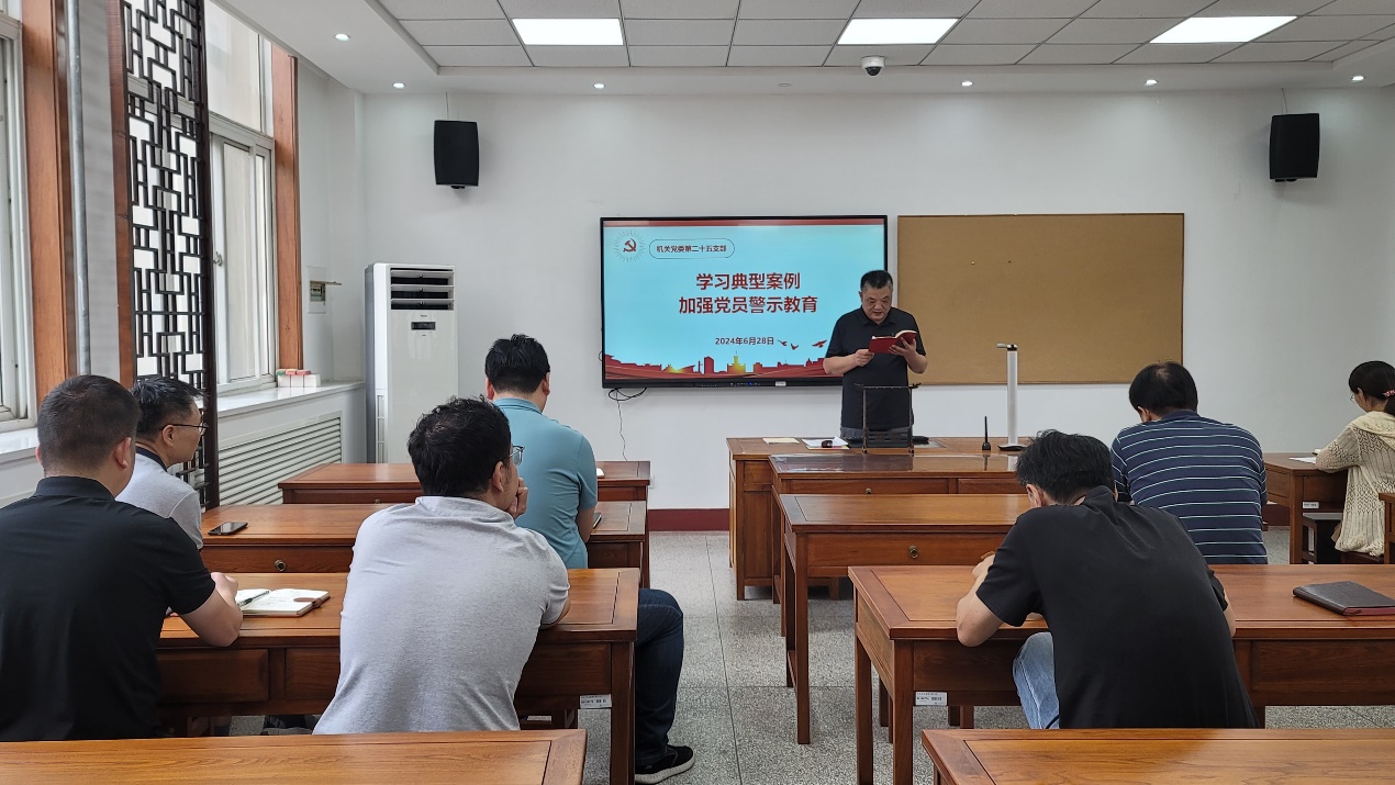 为深入推进党纪学习教育,不断增强党性观念,强化纪律意识, 6月28日下午,机关党委第二十五党支部组织党员结合典型案例,学习《中国共产党纪律处分条例》,加强警示教育。