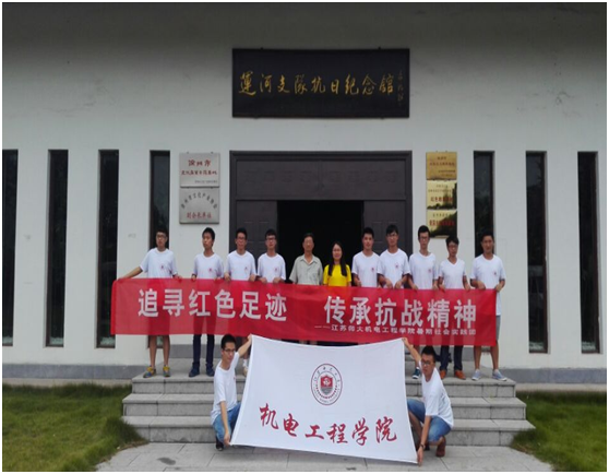 为纪念中国人民抗日战争胜利曁世界反法西斯战争胜利七十周年,8月20号上午,江苏师范大学机电工程学院” 红色之旅”大学生暑期”三下乡”社会实践队来到运河支队抗日纪念馆,追寻红色足迹,传承抗战精神。