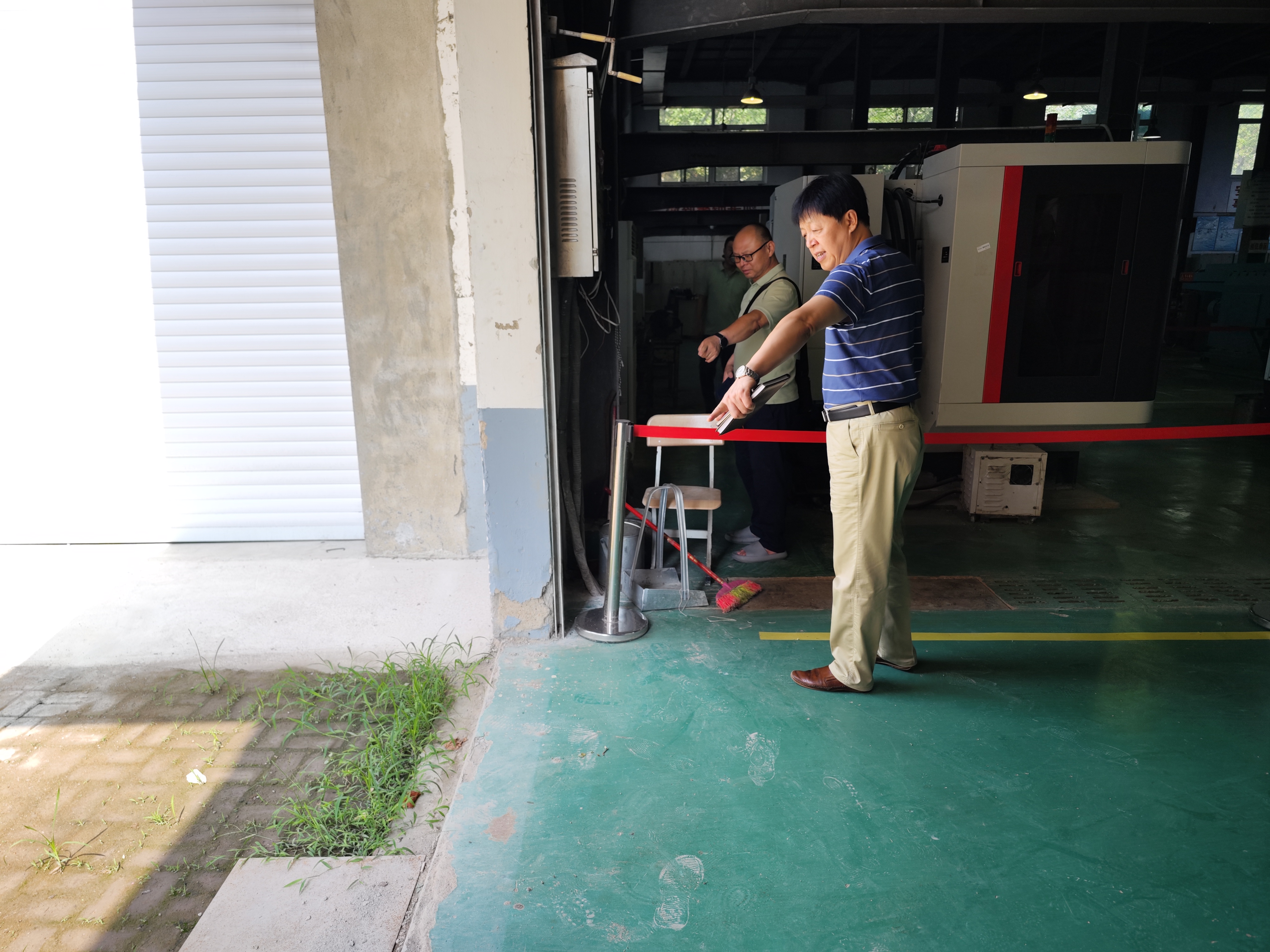 为切实做好暑假期间工程实训中心的安全管理工作,预防安全事故发生,7月1日上午,工程实训中心主任马军带队,对实训车间进行了全面、细致地安全检查工作,深入到普通车床实训区、钳工实训区以及焊接实训区等车间区域进行安全检查,详细查看学生实训情况。马军主任强调师生注意设备的安全使用,正确的用电、用水、用气,做好轮休值班安排,并对暑期的防汛工作进行了全面的部署。