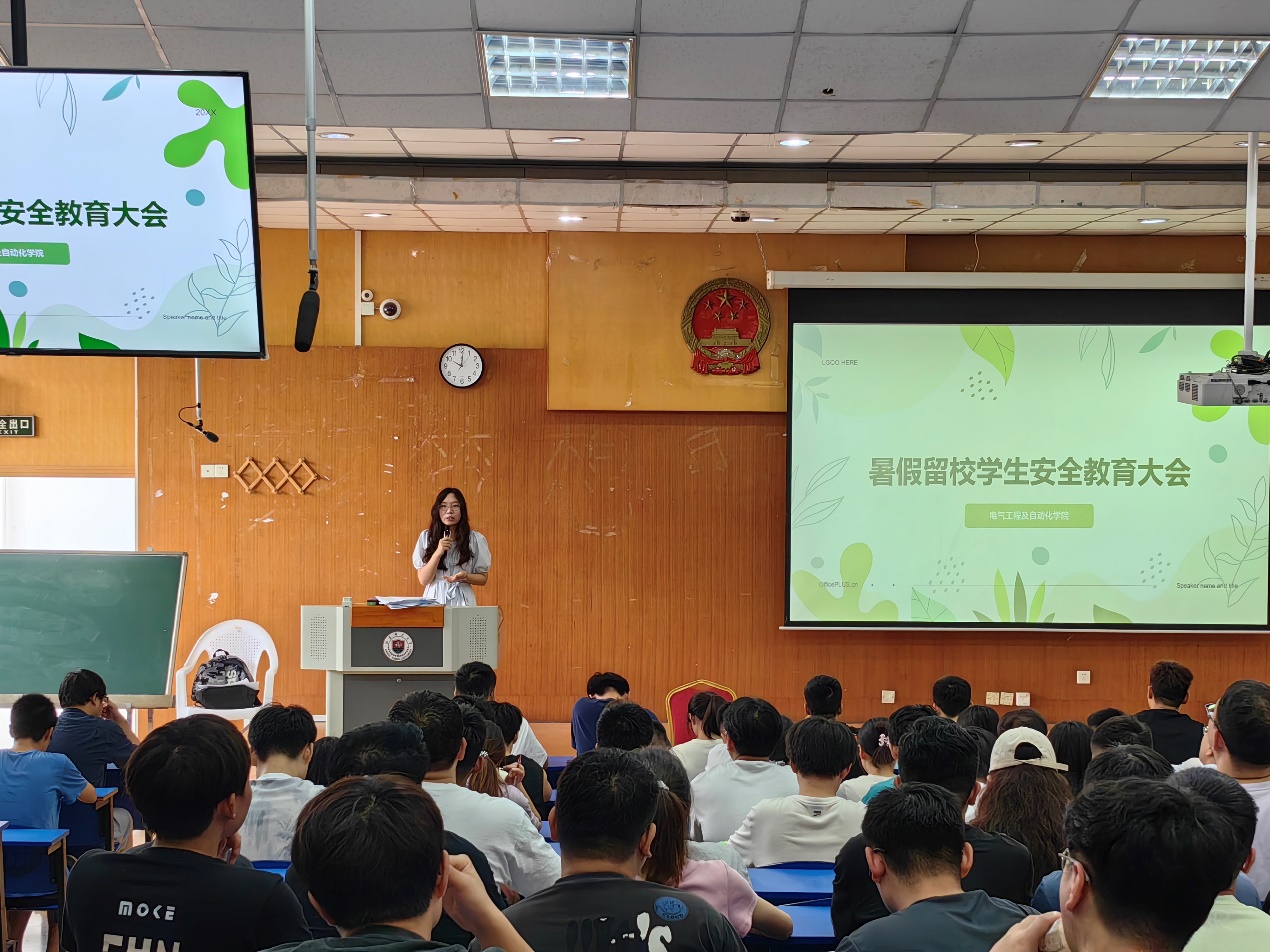 为落实学校关于暑期留校学生安全工作的相关要求,进一步加强暑期留校学生安全教育和服务管理工作,增强学生安全责任意识,7月6日上午,电气学院在17#200B召开了暑假留校学生安全教育大会。学院辅导员赵忠琦主讲,全体暑期留校本科生和研究生参加此次大会。