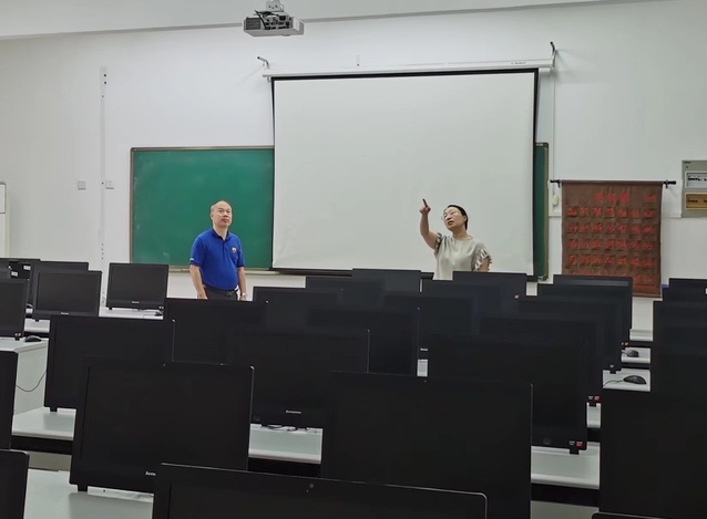 为加强国有资产的安全管理,确保国有资产的安全、完整,7月7日,商学院开展了国有资产检查和实验室安全巡查工作,罗栋梁院长带领资产管理员江南老师,对商学院国有资产进行逐一检查,并对实验室安全进行巡查。