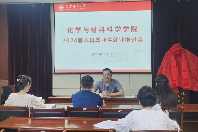 为继续做好学院2024届毕业生就业工作,推进我院毕业生实现高质量充分就业,化学与材料科学学院于7月7日上午在化学楼211会议室召开就业工作推进会。学院党委赵玉璋副书记、2024届毕业班班主任和学院就业辅导员参加会议。会议由院党委赵玉璋副书记主持。