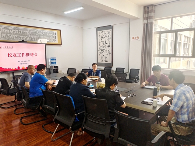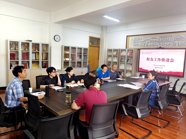 2024年7月10日下午,历史文化与旅游学院举行校友工作推进会。会议由学院党委书记戚洪主持,党委副书记杜登和毕业班班主任代表共8人参加会议。