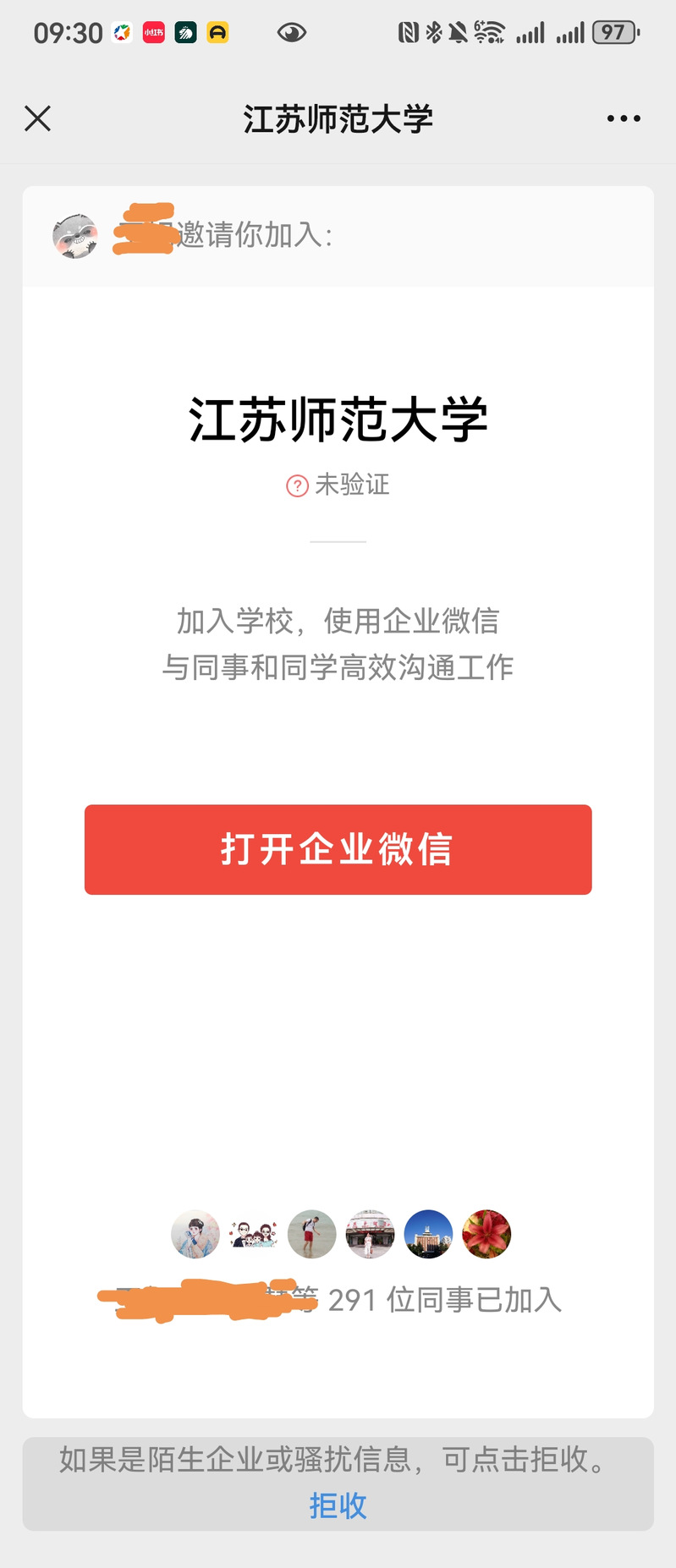 一、“爱师大i-Star”是学校唯一通过官方认证的专用数字校园平台(使用了“企业微信”的技术,但不是“企业微信”),其注册主体为“江苏师范大学”,除此之外,学校并未注册使用任何其他企业微信号。“爱师大”建设坚持以师生为中心,从一开始就将所有师生的方便使用考虑在内,不采取邀请推广的方式发展用户。部分师生收到的相关邀请信息并非学校的官方推送,如收到此类消息,请及时拒收、屏蔽,切勿加入和转发,以免造成个人信息泄露或其他不必要的损失。